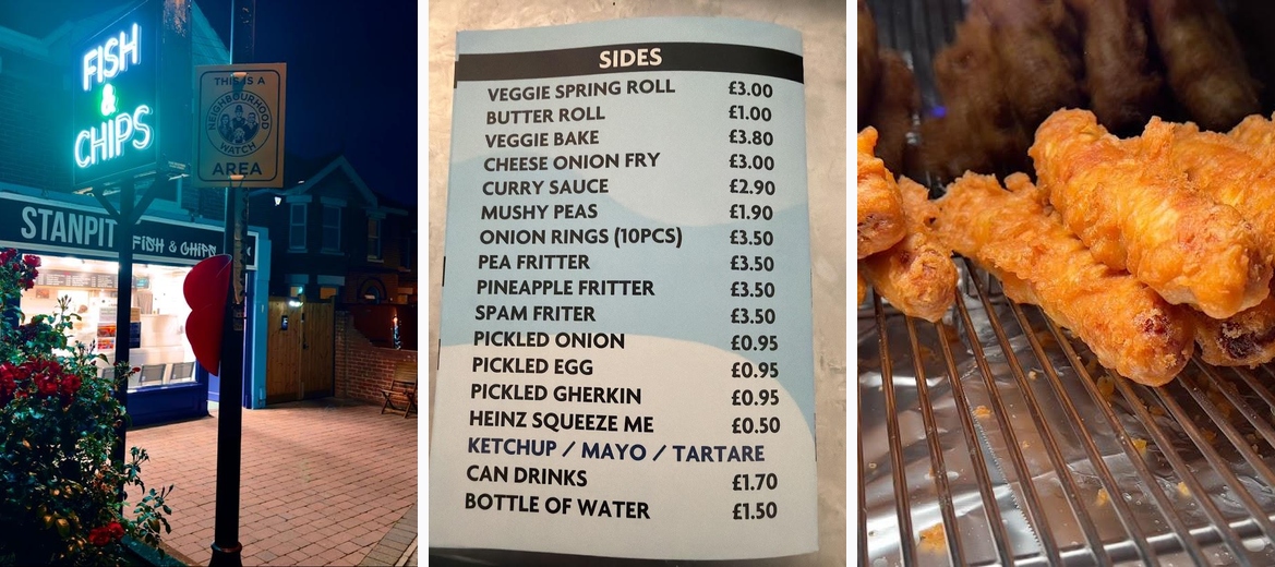 Discover the delicious taste of Stanpit Fish and Chips in Christchurch! Enjoy freshly cooked fish and chips, scampi, and pea fritters, just steps from the beach. Perfect for takeaway or a holiday treat, our eatery is known for its friendly atmosphere and vibrant queues. Visit us at 186 Stanpit for a true local favorite!